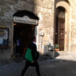 世界一のジェラート屋 DONDILIもあります。すごく美味しかったです。おみやげ物屋もいっぱいあるので、(フィレンツェで買うより安いです)ショッピングも楽しめます。教会に入りたかったですけど、日曜日のミサ中で入ることができませんでした。