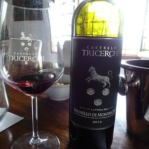 2軒目に向かう途中、モンタルチーノの街なかを観光後、ワイナリーで昼食。ブルネッロ・ディ・モンタルチーノを含む4種と食事、デザートのマリアージュ。イタリアでは、ワインを単品で愉しむというより、料理にあわせるのが基本というだけあって、ワインと料理、デザートのどの組合せも感動体験でした。