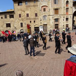 当日はメーデーで街は休みかと思っていましたが、サンジミニャーノでは老人から若い人までの楽団行進があり周りの人も一緒に歌い出し、昔のイタリア映画のワンシーンの中にいるようで感動しました。