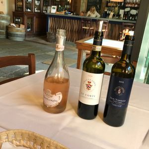 2軒目は、「Principe CORSINI」冠がついた元貴族のワイナリーです。歴史がありさながら資料館のようです。オーナーは昔からのワイン造りを残すために、地域の子供達に体験させているようです。素敵なダイニングで試飲、得物に白を用意してくださいました。①ロゼのスプマンテ②白③ChiantiClassicoDOCG、赤のコースは勿論ChiantiClassicoDOCG3種とても美味しかったです。