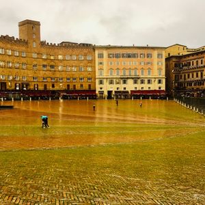 途中で雨の降る生憎の荒天だったが、ガイドの説明も丁寧でシエナの広場は