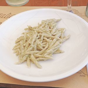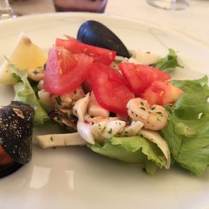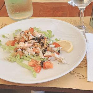 食事はシーフードサラダとトロフィエのジェノベーゼソース、とてもおいしかったです。他の国のツアー客と同じテーブルを案内されましたが、コミュニケーションも取れて楽しいランチになりました。