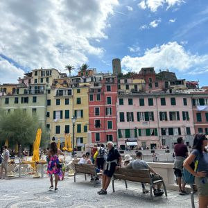 チンクエテッレ行ってきました 朝、フィレンツェ駅に集合し、大型バス3台で快適に近くの電車駅まで移動。そこからは、電車で5つの村のうち、4つを順に回りました。あいにく風が強くなって4つめの村へは予定の船が出航できなくなり、電車での移動となりましたが、旅行にトラブルはつきもの、それはそれで楽しみました。ランチは、ワイン付きで、シーフードサラダと名物のジェノベーゼをいただき、途中でジェラートも食べることができて、食の方もしっかり楽しめました。帰りのバスも快適過ぎて寝てる間に帰って来れました おすすめです