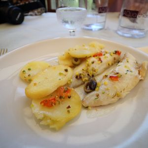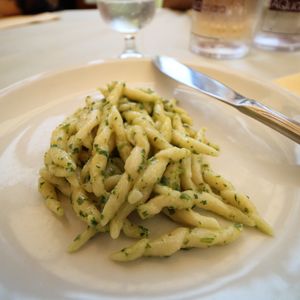 ランチは含まれていませんでしたが、希望すれば15ユーロでガイドさんおすすめのレストランで食事することができました。その日のメニューは決まっていて、ジェノバソースのねじりパスタ、魚料理、レモンのトロトロしたさっぱりデザートでした。ガイドさんからはティラミスが出ると聞いていたので一瞬残念に思いましたが、とにかく暑い真夏の日でしたので逆にレモンのさっぱりデザートで良かったです。