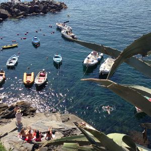 結果は大満足。まずバスで移動開始して、2時間ほどで最初にみえてくる海!この時の感動はモンサンミッシェルが最初にみえはじめてくる、あのちいさな丘をこえたときの感動と同等かそれ以上!でした。そのあと、バスを降りて、最初の街、マナローラ、そして電車で移動して、ヴェルナッツァへ。そこからは船で5分ほどで、モンテロッソへ。ここでランチをとって、ちょっと海にはいって。駅に集合してから最後のリオマッジョーレへ移動。ここは漁港でしたが、やはり海にはいっている人がいたので、まよわず飛び込みました。およぎ目的ならモンテロッソが時間的にもビーチ的にもベストでしょう。レストランのトイレが使えて便利でした。夏なので、水着も水からあがって5分で乾きましたしね。