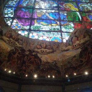 天井の壁画は下で観たとき、途中の段階で観たとき、一番上の階で観たときと絵の見え方に変化があって面白く思いました。この絵をどのようにして描いてここへ設置したのだろうかと朧げに思い描いてみました。大変な作業だったと推察されます。
