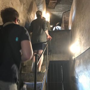 途中で狭い階段をたくさん登りますので、運動靴と歩きやすい格好が良いです。ジーンズもOKですが、教会なので膝やヒジが隠れる格好でないと入らないはずです。