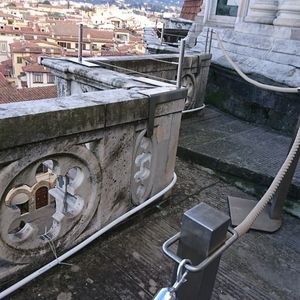 屋上テラスに寄って、しばし解説を聞きつつ景色を楽しむので、一気にクーポラに上がるより楽だったと思います。このテラスからの眺めがあれば、ジョットの鐘楼に上らなくても十分な気がします(たぶん)。