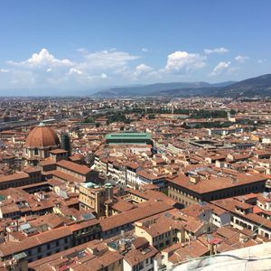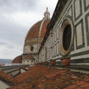 屋上テラスまでは予定通り。風が少し強かったですがフィレンツェの市街が眼下に見えて感激しました。本来は私たち4人はここでツアーから離脱し、クーポラには登らない(メンバーの足の状態が万全ではなかったので)とガイドさんに事前に伝えていたのですが、皆さん、どんどんクーポラに登り始め、我々はどこから下ればよいか分からず、結局、皆さんの後について登ることになりました。結果的にこれが大正解!! 晴れ渡った青空の下、フィレンツェの市街を一望のもとに収めることが出来ました。大変素晴らしい経験となりました。