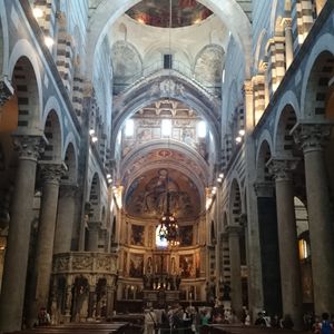 私は、礼拝堂・大聖堂内部に入りました。チケット売り場はわかりやすいです。カウンターでどこの場所に入りたいのか(斜塔・大聖堂・礼拝堂・墓所など)係員に言って、チケット購入します。大聖堂は無料ですが、チケットが必要です。礼拝堂はフィレンツェのサンタ・マリア・デル・フィオーレ大聖堂礼拝堂と違い、シックな装い。時間がある方は、入って左にある2Fに向かう階段で、ぜひ上階に。