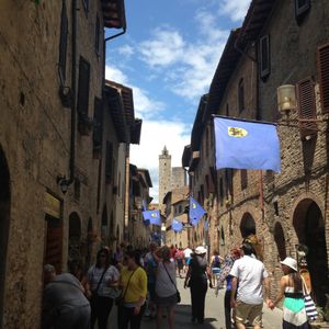 幾度もの戦争に巻き込まれ、ペストの流行により廃ったために、防衛のための塔がいまだに14塔残る街。ドゥオーモのみ、内部見学しましたが、さすがシエナ派の画家が多く排出された街ということで、絵画が素晴らしいです。版画などの販売ギャラリーなども多く、コンパクトながら