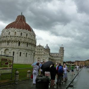 念願のイタリア旅行、その中でも家内が一番楽しみにしていたのがピサ。でも当日はあいにくの雨模様で少々がっかり・・そんな中でもガイドさんが一生懸命案内してくれて感謝です。1つ良い事、雨の日は斜塔に登る行列が短く、少しの待ち時間で入れそうでした(我々は行けませんでしたが・・)