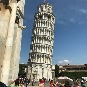 フィレンツェ発の日帰りツアーでピサの斜塔に登ってきました。丁寧な日本語ガイドで、安心して参加出来ました。ただ、今年の夏のイタリアはガリレオもびっくりの猛暑。ピサ大聖堂の境内は日陰が少なくヘトヘトでした。斜塔の傾いた螺旋階段をフラフラしながら登りましたが、最上階からの眺めは絶景でした。同行の皆さんもガイドさんもお疲れ様でした。