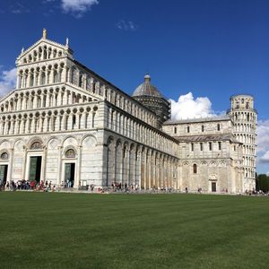 8月の夏の盛りにお邪魔しました。ツアー参加者は日本人のみ。非常に人数が多く、バス2台で訪問となりました。ガイドは現地在住の日本人女性。非常に明るく盛り上げ上手なガイドの方でした。半日ツアーなので目的地はピサの斜塔だけなのですが、道中は車窓の景色、街、歴史についてガイドの女性がいろいろなお話を聞かせてくれました。テンポよくうまく興味を引く内容で話してくれたので、非常に関心をもって聞けました。天気も非常によく、思い出に残るツアーになりました。