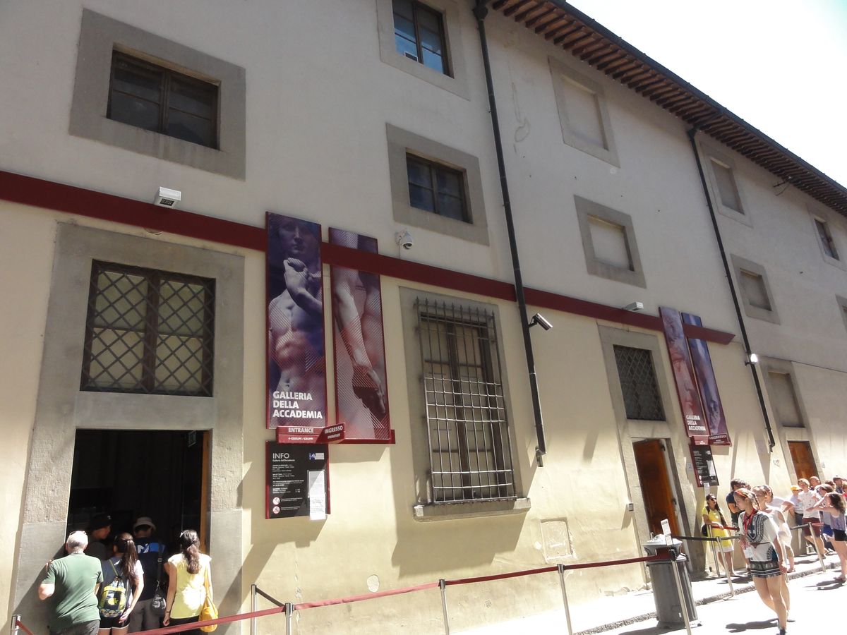 アカデミア美術館へは迷わずに行けましたが、人が多く並んでいて、予約してある人用の入り口がわかりずらく、またバウチャーと美術館からのメールに添付してあるバウチャー持参しましたが、当日さらにチケットに交換してから並ぶということがわかりにくく苦労しました。美術館の入り口沿いの道路は狭い道路の上に、お土産屋さんや絵描きさんの絵が道路に置かれていて、さらに狭い感じです。