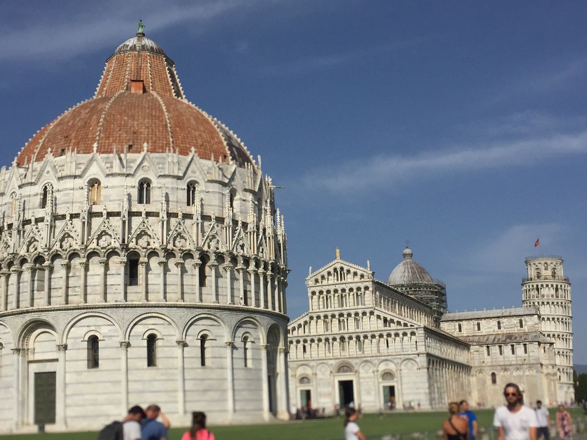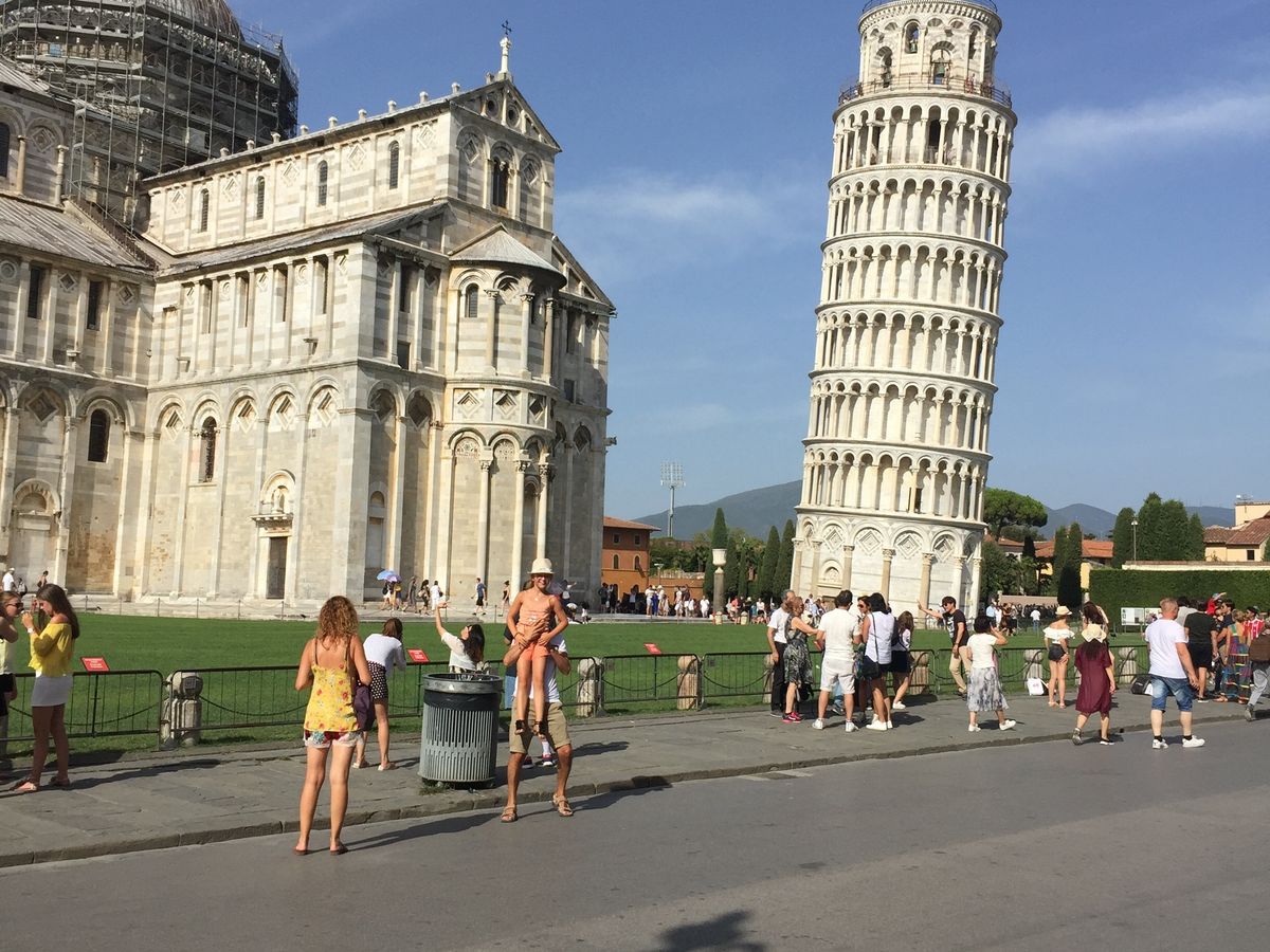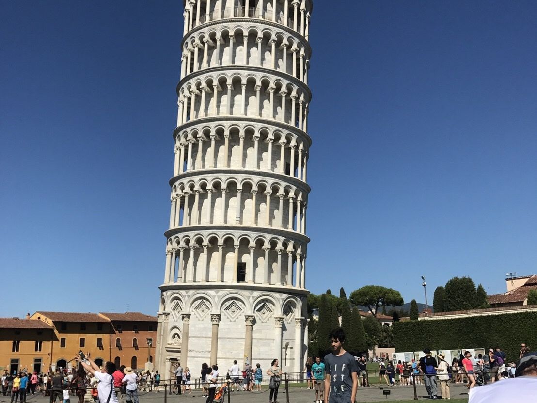 フィレンツェ発の日帰りツアーでピサの斜塔に登ってきました。丁寧な日本語ガイドで、安心して参加出来ました。ただ、今年の夏のイタリアはガリレオもびっくりの猛暑。ピサ大聖堂の境内は日陰が少なくヘトヘトでした。斜塔の傾いた螺旋階段をフラフラしながら登りましたが、最上階からの眺めは絶景でした。同行の皆さんもガイドさんもお疲れ様でした。