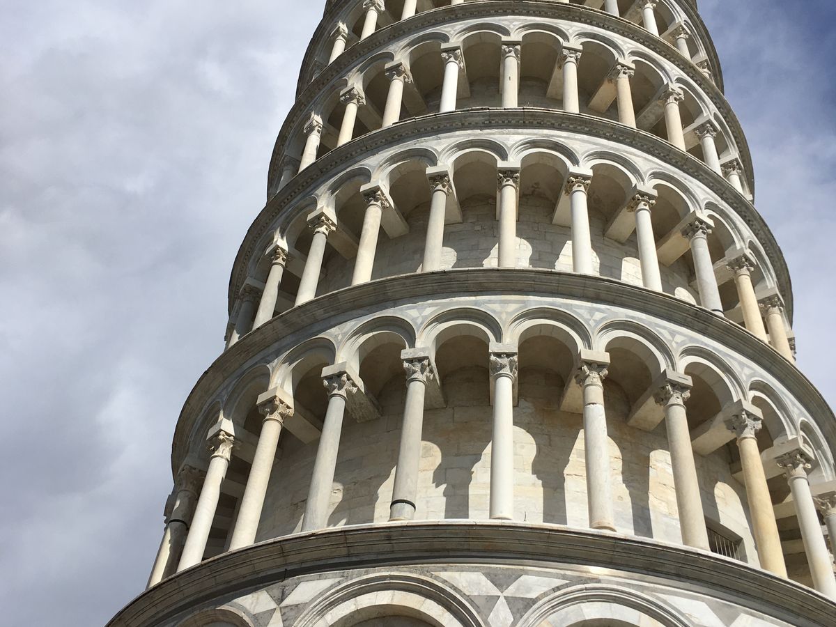 ピサの斜塔はやはり傾いていて円筒の細い階段を5階分くらい上がっていくのですが、階段自体も傾いているのを感じました。階段が大勢の人の足跡で石が磨り減っているのが印象的でした。