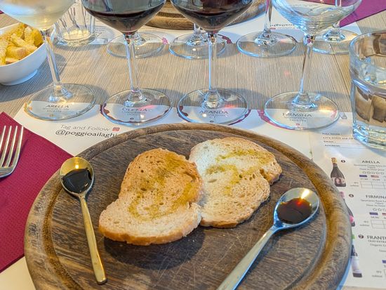 モンタルチーノのワイナリーでは軽めの試飲と高い場所にあるワイナリーからの景観を、モンテプルチアーノのワイナリーでは軽めの試飲とチーズとのペアリングも楽しめました。