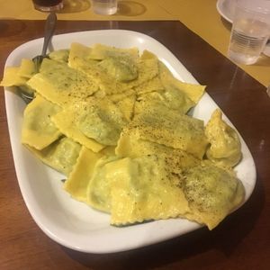 前菜、パスタ、メイン、デザートまで、17:00~19:30の2時間半で作ります。6人ずつの班に分かれ、先生の説明を聞きながら作ります。私達が参加したときは、全部で30人ほどもいました。一番おもしろいのは、パスタマシンを使ってのパスタ(ラビオリ)の手作りです。その後、試食もあります。ワインは出てくるのですが、デザートに合わせてコーヒーがほしかったので、マイナス1としました。
