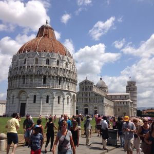日本とも負けじ劣らずの暑さの中、ツアーに単独で参加しました。ピサはフィレンツェから電車で行くことも可能とは聞いていましたが、日本でいう参道が結構長く続く為、駅からだと結構歩きますので、ギリギリまで来てくれるバスは絶対におすすめ。また、個人だと荷物を預けたりチケットを買ったりと色々1人では面倒なこともあるため、ここはどの観光地よりもツアーでの参加をお勧めします。私が今回のツアーでラッキーだったのは元々英語でのツアーで日本人ガイドが付かない内容の中、ちゃんと日本人ガイドさんがいたこと、そして日本人参加者が1人だったということもあって、専属でお世話してもらいました。海外ではころころ変わる集合時間や条件などもその方のおかけで問題なし。そして恒例の斜塔を前にしてのポージングの写真も撮ってもらえました。大聖堂見学や斜塔の説明も英語のガイダンスがあったものの日本語で丁寧に説明してくれました。とっても感謝しています。そして素晴らしい思い出が残せました!