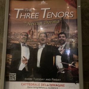 ディナーなしのプランで予約。観光の中心地からは少し外れたエリアでしたが、ドゥオーモ周辺からも徒歩で行ける範囲でした。会場となる教会は周囲の建物に溶け込んでいて少し分かりにくいかもしれませんが、地図を見ていけばたどり着けると思います。開始時刻30分前ぐらいに着きましたが、その時には扉が開いていて中に入れました。教会でのコンサートなので一応羽織物を持っていきましたが、地元のお客さんも混じっているラフな雰囲気で、半袖やハーフパンツの方も多かったです。コンサートの演者はバリトン1人、ソプラノ1人、ピアノ1人。1時間ほどの短めなプログラムでしたが、演者の方が声量もあり素晴らしく、最後は会場全体でスタンディングオベーションでした。「椿姫」「セビリアの理髪師」など有名な作品の曲ばかりなので、手軽にオペラを楽しみたい方におすすめです。素敵な思い出になりました(^^)