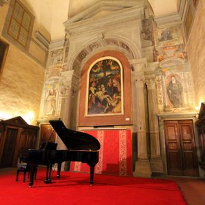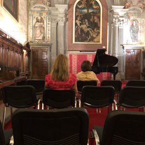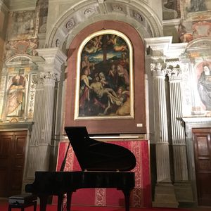 開始時間が予定より25分遅れて始まりました。ベテランの男性と初々しい女性とピアノ奏者さんたちの息が合っていて、とても楽しめました。会場はほぼ満杯。お休み時間にドリンクを飲んで最後まで楽しめました。場所は地図で確認をしていたので、分かりにくいと言うことはありませんでした。教会とありますが、ちょっと地味な建物ですが、開演前に受付のスタッフの机が路から見えているのですぐわかるかと思います。会場近くに小さなお店があって、そこで水を調達していきました。会場には扇風機しかないので、真夏は暑いので水分補給は必須です。遅い時間に終わりますが、ポンテヴェッキオまで比較的近いですし、途中、リストランテが結構開いていて明るいので、徒歩で帰宅いたしました。小さなホールなので空間いっぱいに歌声とピアノの音が溢れて、とても良い時間を過ごすことが出来ました。