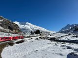 そして、いよいよツアーのメインイベント、ベルニナ列車に乗車します。列車は急行ではなく普通列車でしたが、窓を開けられるので風を感じながら写真も綺麗に撮影でき、急行よりも寧ろお勧めです。夏でしたが、氷河が残る山々、そして湖の美しさは忘れられません。列車は、左右どちら側に座っても綺麗な景色をみることができますが、ループ橋を綺麗に撮影したいのであれば、スイスからイタリアに向かう場合は右側、イタリアからスイスに向かう場合は左側の座席に座るのが良いでしょう。