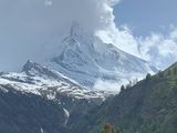 残念ながらゴルナーグラート山頂でマッターホルンは望めませんでしたが、下山途中の車窓から何とか見えました。