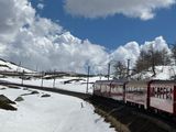 そして、いよいよツアーのメインイベント、ベルニナ列車に乗車します。列車は急行ではなく普通列車でしたが、窓を開けられるので風を感じながら写真も綺麗に撮影でき、急行よりも寧ろお勧めです。夏でしたが、氷河が残る山々、そして湖の美しさは忘れられません。列車は、左右どちら側に座っても綺麗な景色をみることができますが、ループ橋を綺麗に撮影したいのであれば、スイスからイタリアに向かう場合は右側、イタリアからスイスに向かう場合は左側の座席に座るのが良いでしょう。
