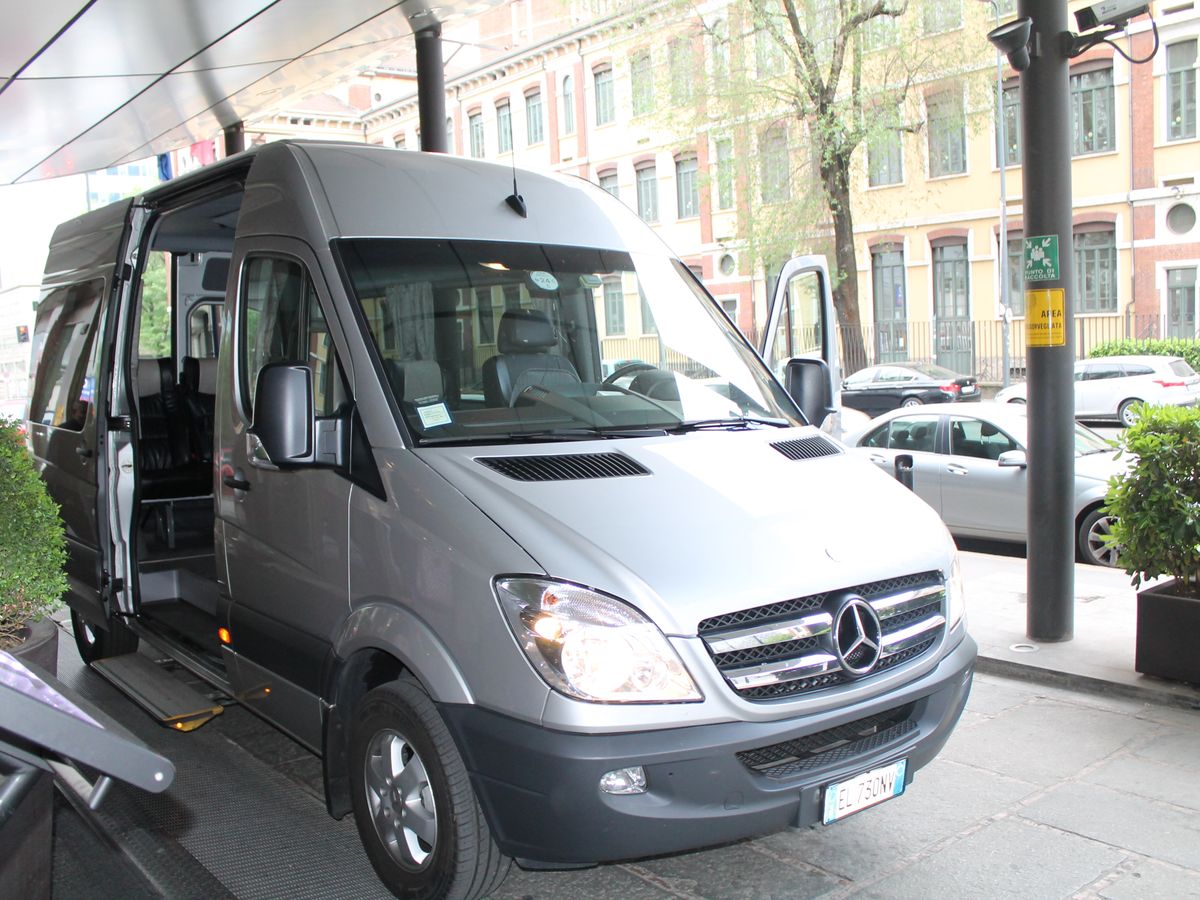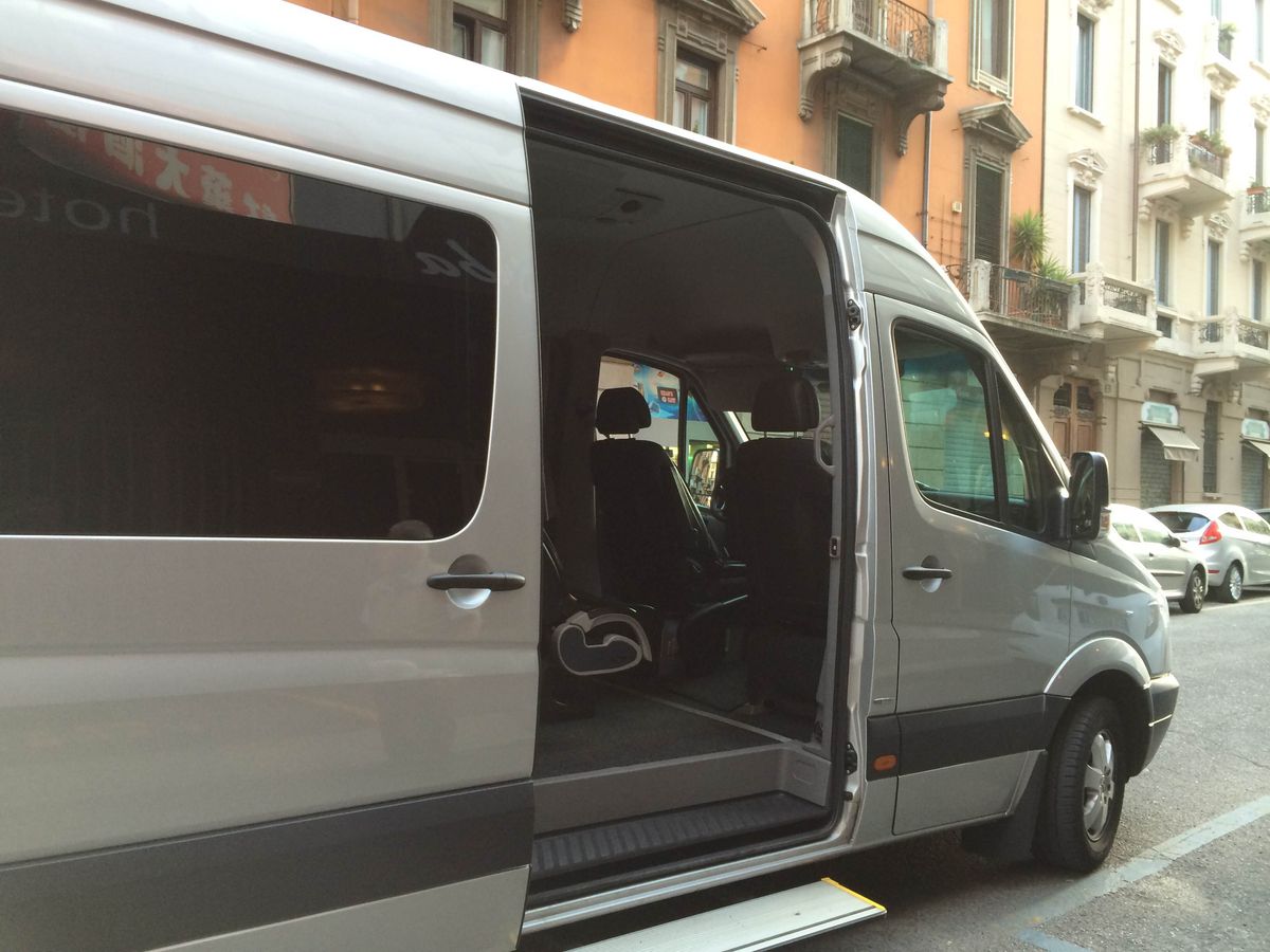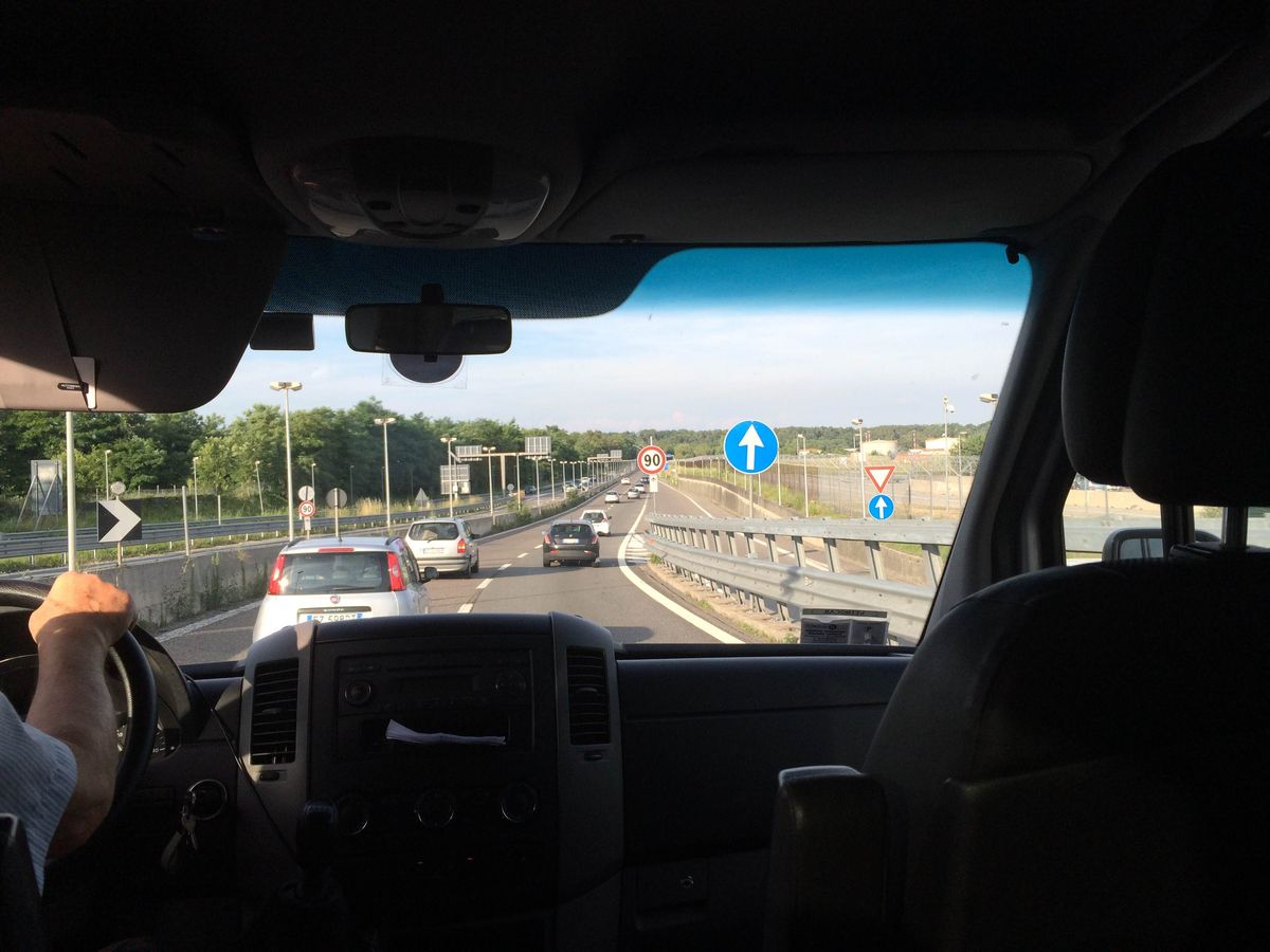 マルペンサ空港に着き、到着ロビーまで行くと、ドライバーさんが私たちの苗字(カタカナ)で書かれたプレートを持って待っていてくれたのですぐにわかりました。2名でしたが、ベンツのワゴン9人乗りで、快適な車内でホテルまで。空港からホテル(ミラノ中央駅そば)まで40分程度で到着しました。途中目立った混雑もなく、スムーズにホテルまでたどり着くことができました。ドライバーの方も気さくな方で、楽しい旅のスタートとなりました。