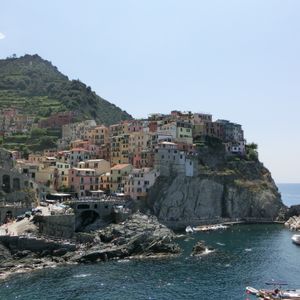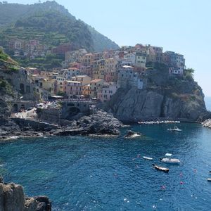 自分だけでは手配しにくい旅程を観光バス、徒歩、電車、船を乗り継いで効率よく回れるのはツアーならでは。5つのうち2つの村は船から眺めるだけですが、よほど各村の違いにまでこだわる人でなければ時間的制約も考えると十分でしょう。私たち家族が参加した日は運よく快晴。雨傘が日傘として役立ちました。帽子がおすすめです。紺碧の地中海と可愛い村々、美味しくてボリュームたっぷり(自己負担・対ロンドン比)の昼食、休憩時間にはジェラートやドリンクを味わいながら(現金が役立ちます)、都会には無い豊かな自然を満喫できました。ガイドさんはイタリア語、英語、スペイン語の3か国語で解説、一日大変ご苦労さまでした。(参加者はアメリカ、欧州、アジア)バスは片道約3時間。田園地帯・山岳地帯を疾走するのですが、行く先々では自然や景観が保たれており、イタリアの地方の活力が印象に残りました。今は仕事の関係でロンドン在住なのですが、日本も10年後には是非こうありたい、と強く思いました。地方振興に関わる方々にも見て頂きたいです。