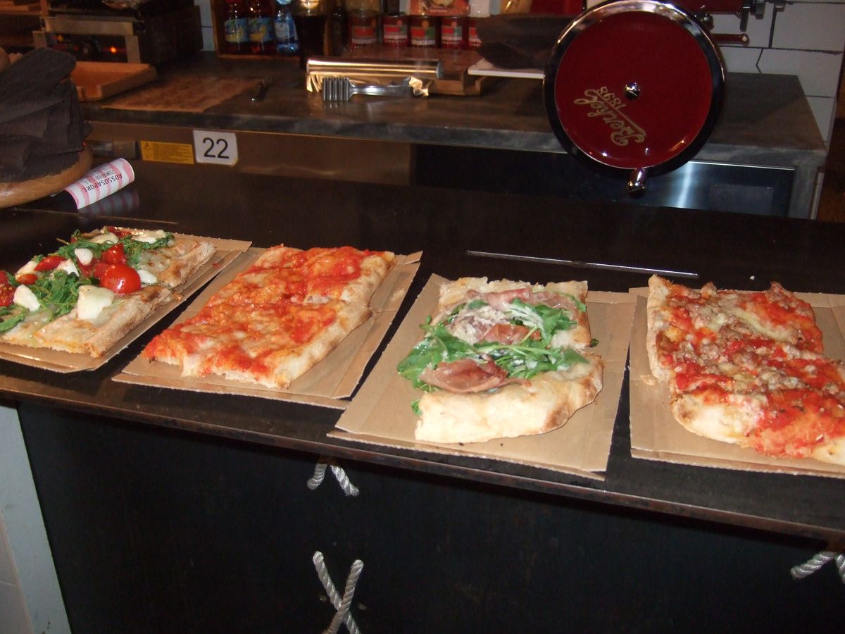 レストランには入らず、ピザバーで4種類のピザを食べました。
