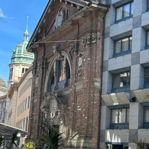 ツアーバス下車場所の噴水前から、街の中心部を散策し、教会経由でルガーノの駅までゆっくり散歩するコースがおすすめ。ルガーノ駅では日本の電車の駅とは違った感じが味わえるし、電車の時刻表なども確認でき、思ったより電車の本数も多く、次回は一人での電車ツアーなども可能なことが確認できる。