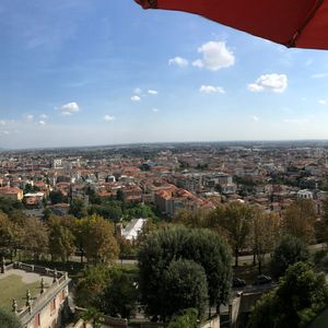 ベルガモはチッタアルタまでクルマですので途中のベネチアンウォールからの眺めは良いのですが、チッタアルタに着くと眺望が得られません。中は狭い道と大勢でごった返していました。チッタバッサを見下ろすポイントとしてお勧めはフニコラーレのチッタアルタ駅の奥にあるカフェのバルコニーです。ここでフランチャコルタを飲みながら過ごす瞬間は最高でした。