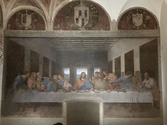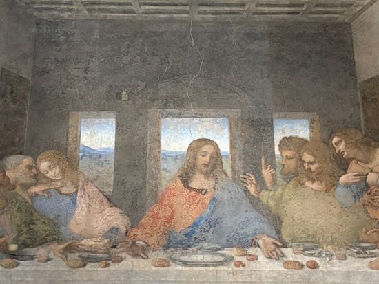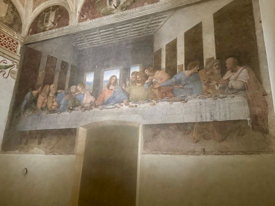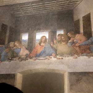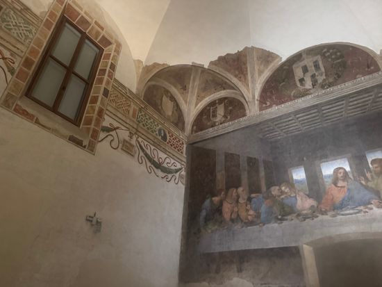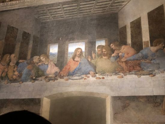 ツアーの最後が最後の晩餐でした。たくさん歩いたので、疲れていましたが、素晴らしかったです。15分間しか見られませんが、近くで見たり、椅子に座って全体を見たりしてじっくりと鑑賞できました。イベントの為、ドーモの内部が見学できなかったのは残念でした。