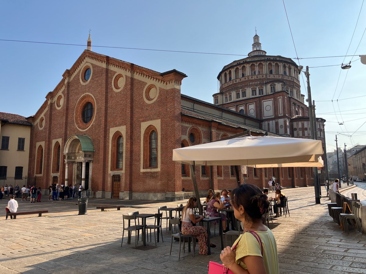 最後の晩餐は公式サイトだと予約できず、こちらにお願いしました。ミラノ中央駅から地下鉄は怖かったので、トラムに乗って教会まで行きました。途中、スフォルツェスコ城前で下車して少し歩いて向かいました。ミラノの街並みもゆっくり見れるので時間はかかりますが移動はトラムがオススメです。最後の晩餐は管理もしっかりされていて、歴史や修復の過程も学べて素晴らしかったです。町歩きも普通なら通りすぎてしまいそうな遺跡あとなども案内してくれて、最後まで飽きずにミラノを堪能できました。