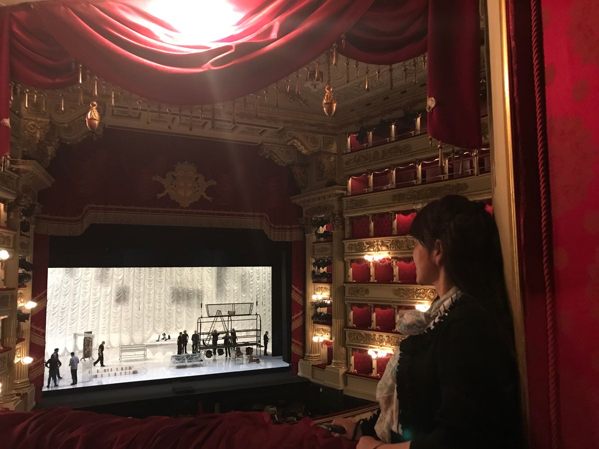 スカラ座の内部を見学できて、貴重なリハーサルの舞台を観ることができました。