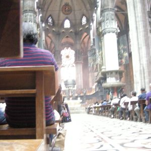 「最後の晩餐」は、人数制限の関係上、2チームに分かれ、片方が「最後の晩餐」鑑賞中に教会やお店を見る事もできました。生で見る「最後の晩餐」は、素人ですが、ダヴィンチの柔らかいタッチの絵に感銘を受け、その優しさに、衝撃的な場面を描いていることも忘れ、何故か癒しを覚えてしまいました。ミラノに行くなら、実物を見る事をお勧めします。