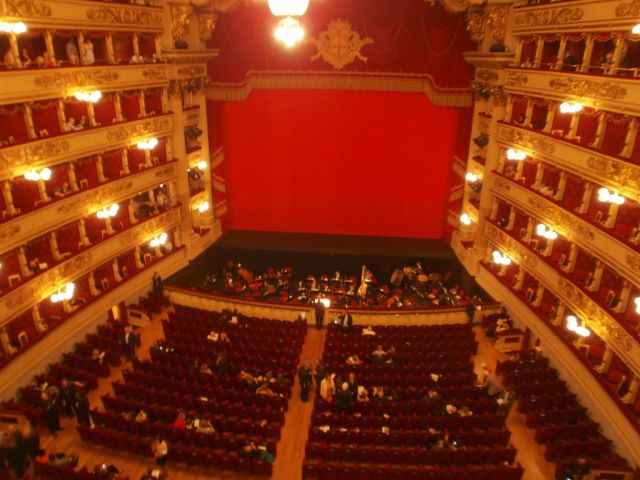 スカラ座の外観はシンプルですが、中はすばらしく豪華でした。
