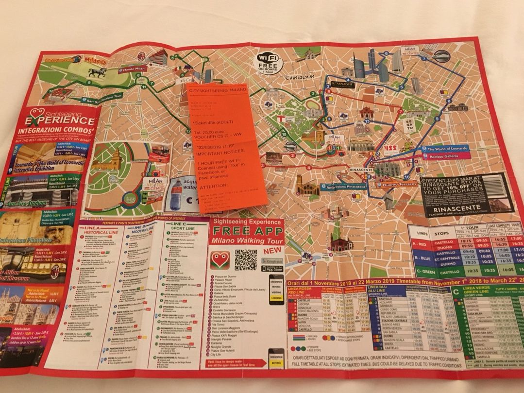Hop-on Hop-off観光バスは、シンガポール、香港、バルセロナ、ローマと各都市の観光で利用し、今回はミラノで48時間パスを予約しました。