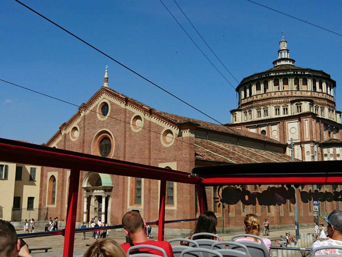以前、最後の晩餐を鑑賞したので、今回はサンタ・マリア・デッレ・グラツィエ教会の外観をバスから。中の見学シーンを思い出しました。