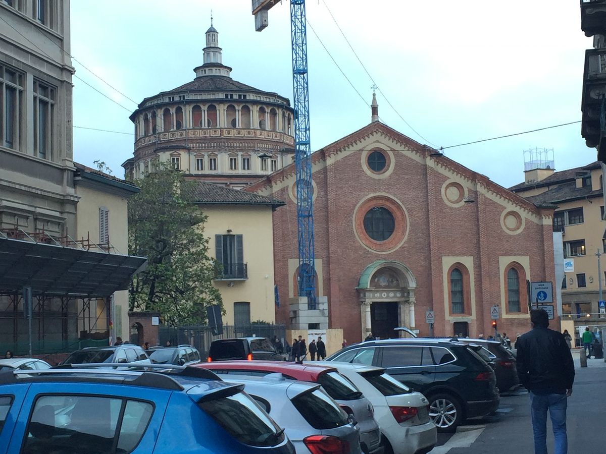 英語ツアーの方が人数も多かったのでそちらが優先なのは仕方がないのかもしれませんが、こちらも大金を払って参加しているので、もっと配慮があってもいいのではないかと思います。バスから眺めるスフォルツェスコ城の話は全く聞こえず、どこに城があるかも聞き取れず、城を見ないうちにサンタ・マリア・デッレ・グラツィエ教会に着いてしまいました。
