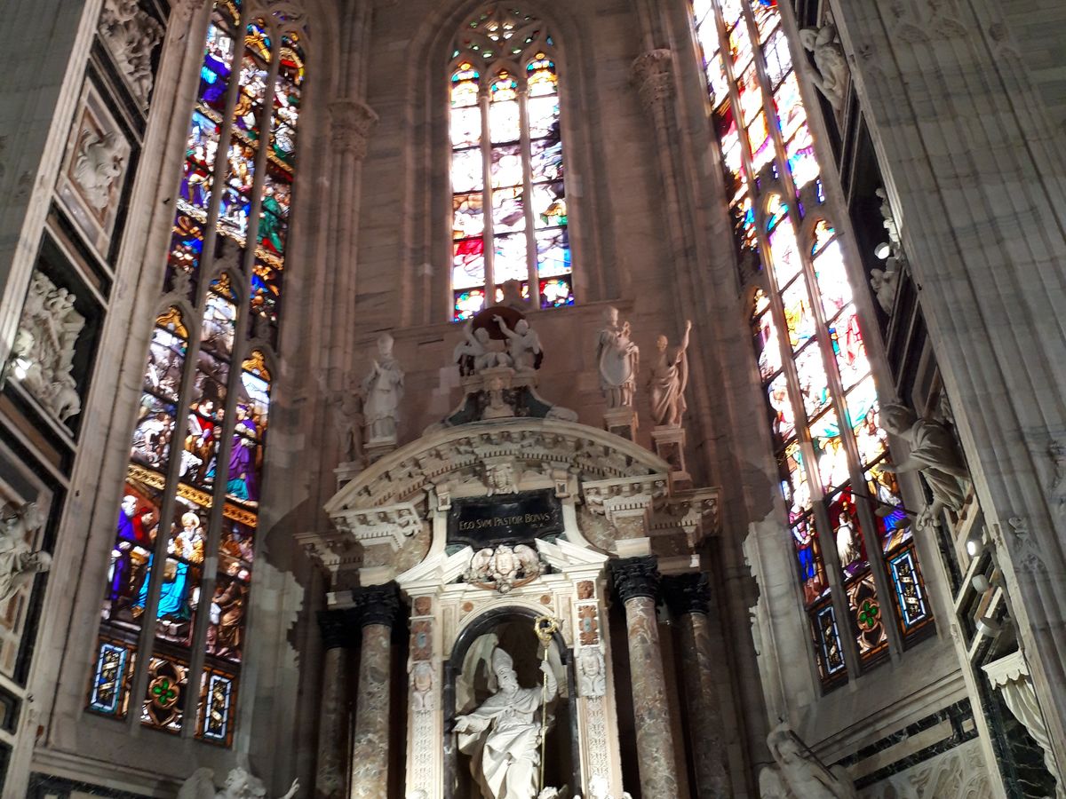 当ツアーを予約確定したあとで当日はドゥオーモで行事があることが発覚、予約時間の変更となり観光の順序を変更することとなりましたが、ガイドさんの細やかなお心遣いで時間に無駄が出ないよう、ドゥオーモのエレベーターの予約をしておいて下さって感激しました。予約時間までオペラ座を見学することを提案していただき案内していただきましたが、その知識の豊富さと説明の面白さにあっという間に時間が過ぎていきました。エレベーターでの昇降の注意点や帰り道まで丁寧に教えていただき、ドゥオーモのてっぺんから見下ろすミラノの絶景を見ることが出来ました。行事後のドゥオーモには入場を待つ長蛇の列が出来ていましたが、私達は開場すぐに一番に入場させていただいて、豪華な教会内をゆったりと見学することが出来ました。ガイドさんのとても上品な語り口と知識で素晴らしい旅の思い出が出来ました。