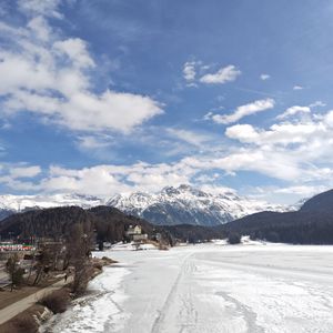 3月下旬は湖が凍って白銀の世界で素晴らしい眺めでした!湖畔を散策しました。アルプスの美しい山々が見れました。※写真参照