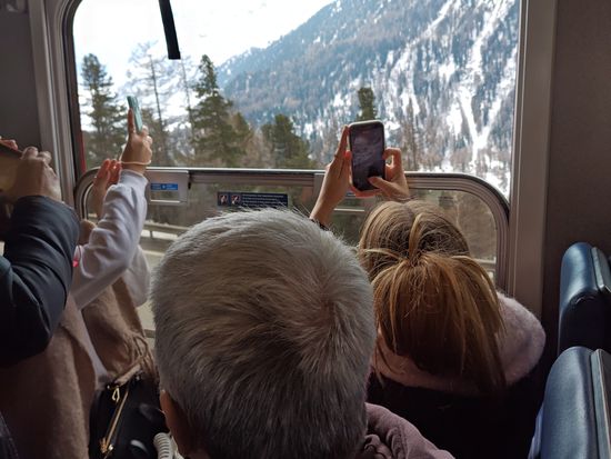 ベルニナ線は座席指定の為、ベストポジション(進行方向右側)になるかどうかは運次第。