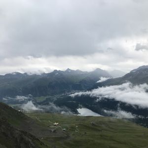 ホテルを出発した時は、まだ青空が見えていましたが、山に入ると曇りに。目的地のサンモリッツでは、雨が降っていました。