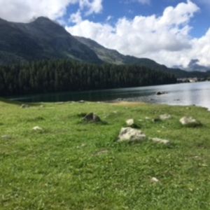 サンモリッツについてからは9割の方が添乗員さんと一緒にランチへ行きましたが、私たちは散策目的できていたので、湖を囲っているウォーキングコースを歩いて、ミラノから持って来たサンドイッチを芝生の上で食べました。