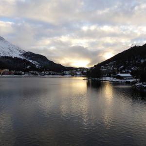 サンモリッツについたら自由時間で、お買い物、サンモリッツ湖撮影などできますが、せっかくなのでホットチョコレートドリンクを飲みました。(あまり時間がないのが残念でしたが・・・)カフェから出ると青空が出てきたので、美しいサンモリッツ湖のサンセット写真を撮ることができました!