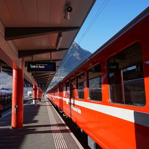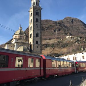 教会を出るとアルプスの山々が見え、街の中を真っ赤なベルニナ急行を通って行く姿を見ることができます!