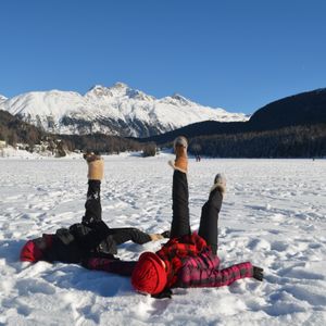 サンモリッツでは、凍てついた湖の上で雪遊び